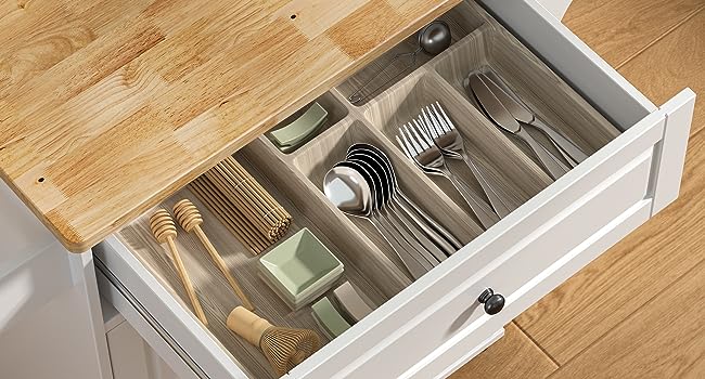 The top slide-out drawer can be used to store spoons, forks, knives, and other small items for easy storage and organization.