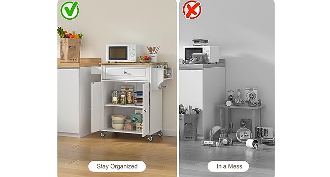 - 🏠[𝐌𝐮𝐥𝐭𝐢𝐟𝐮𝐧𝐜𝐭𝐢𝐨𝐧𝐚𝐥 𝐤𝐢𝐭𝐜𝐡𝐞𝐧 𝐢𝐬𝐥𝐚𝐧𝐝]In addition to its primary use as a kitchen cart, it can also serve as a kitchen dining bar, coffee bar, hotel cart, kitchen bakers rack, or microwave cart. It is versatile enough to fit into various areas of your home, including the kitchen, dining room, living room, and hallway. It can be a great helper for your storage needs!