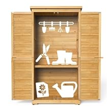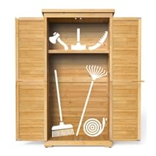 - 【Lockable Doors with Shutter】The outdoor vertical storage cabinet with a wooden latch keeps all your garden tools secure, and the powerful magnet of the doors brings convenience to opening and closing the doors. Besides, the outdoor organizer is adapted with shutter design, is good for plates of water leakage, and has a better ventilation effect.